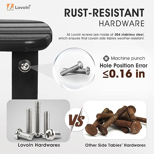 • LOW MAINTENANCE – LovoIn outdoor side tables are made of Sustainable HDPE Materials, which can be recycled and reused. There is no need for painting or staining, but just use soap, water and soft brush to clean easily. No other maintenance is required
